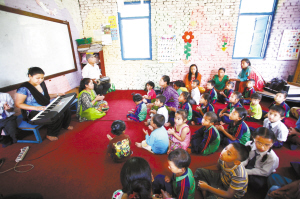 尼泊爾學校復課 5月31日,在尼泊爾的巴克塔普爾,復課的學生們接受音樂治療。據尼泊爾當地媒體報道,尼泊爾教育部已經宣布,全國14個地震受災縣的學校將于5月31日復課。新華社發