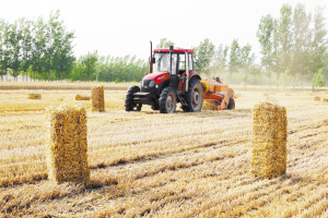 左圖:扶溝縣鼓勵農業專業合作社購買100多臺秸稈打捆機,及時將散落麥田的廢棄秸稈整理打包,每天有4000噸秸稈被集中銷售到國能生物發電廠、養殖場等。(張力友 攝)