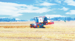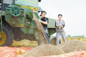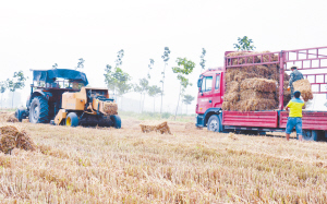 今年“三夏”,沈丘縣堅持做到進地作業機械全部安裝秸稈粉碎還田裝置,一律執行“低留茬、細粉碎”作業,對不符合作業要求的機械,及時制止并督促就地整改,達不到標準要求的地塊,責成村級組織破茬耕翻,確保秸稈粉碎還田質量。圖為付井鎮境內一輛安裝秸稈粉碎還田裝置的聯合收割機正在田間作業。(肖飛 攝)