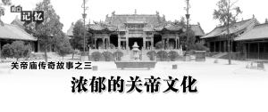 周家口關帝廟的一大功用是會館,是商人們的沙龍之地。但既然打著關帝廟的旗號,自然少不了關帝文化的渲染。所以,廟內的重要內涵之一就是關公文化。關公從“當時義勇傾三國”的蜀漢名將,到“萬古祠堂遍九州”的神化、圣化偶像,是中國封建社會進入后期以來,社會各界對關公不斷美化、圣化和神化的結果。從宋元至明清的這一歷史過程中,上至高居廟堂的帝王將相,下至終生勞作的庶民百姓,從揮文弄墨的文人學子、舞槍弄劍的草莽義士到勾欄瓦舍中的說書藝人、遠避塵世的僧侶道士,幾乎都陸陸續續匯入了美化、圣化和神化關公的潮流。在這一浪高于一浪的關公崇拜浪潮中,從關公身上發掘出來的和被追加到關公身上的美德與美譽,遠遠超過了歷史上真實的關公,幾乎達到了無人可及而又無以復加的地步。于是,生活于三國時代的關公,在宋元明清之際,便漸漸地超凡脫俗,青云直上,由一個充滿悲壯色彩的人間英雄,變成了萬民禮拜的神圣偶像。所以,在關帝廟里,多有人們對關公的贊美楹聯,而這些楹聯也成為關帝廟關公文化的內蘊之一。