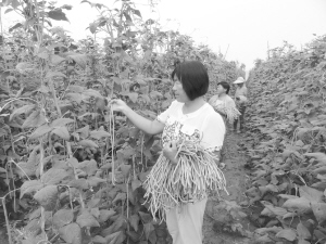 7月4日,商水縣舒莊鄉(xiāng)一農(nóng)民種植專業(yè)合作社的社員們正在摘豆角。該合作社今年種植麥瓜套、蒜瓜套和豆角120多畝,畝均收入在4000元以上。近年來,舒莊鄉(xiāng)調(diào)整產(chǎn)業(yè)結(jié)構(gòu),拓寬農(nóng)民增收渠道,推進現(xiàn)代農(nóng)業(yè)發(fā)展,健全服務(wù)體系,創(chuàng)建了瓜菜生產(chǎn)基地、良種繁育基地、苗木生產(chǎn)基地等,開辟了一條農(nóng)業(yè)增收、農(nóng)民致富的新途徑。