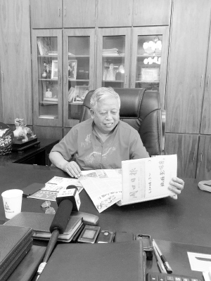 張柱堂向記者展示他做的《周口日報》剪貼本。