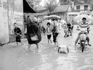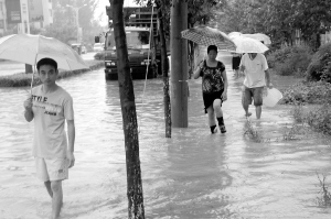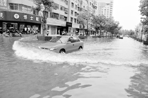 淮陽城區部分路段積水成災 晚報記者 杜欣 攝